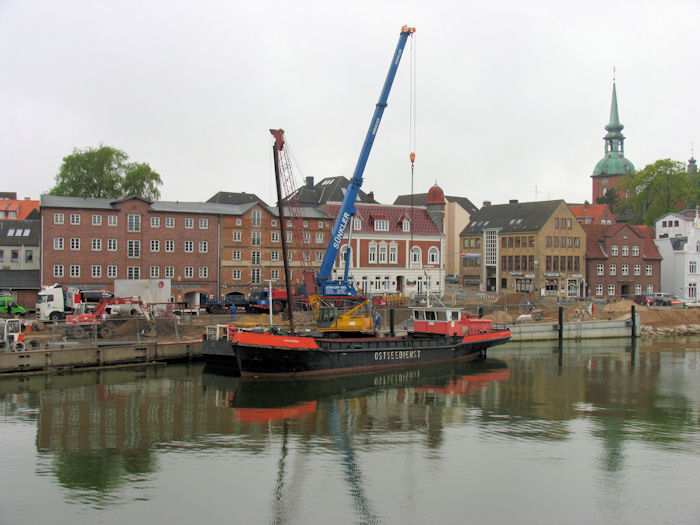 | 11.05.2004 - 9:18 Uhr - Kappeln/Schlei: Nordhafen Umgestaltung des Hafenvorfeldes: Schleibrücke / Hohlweg bis Fährberg Am Hafen - Einbau eines Regenwasserklärbeckens Die erste Hälfte des Beckens muss jetzt noch in die Position gedreht werden. Foto: Eckhard Schmidt - Kappeln - (C) 2004 |