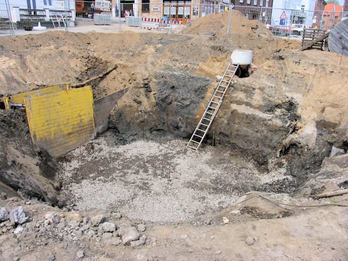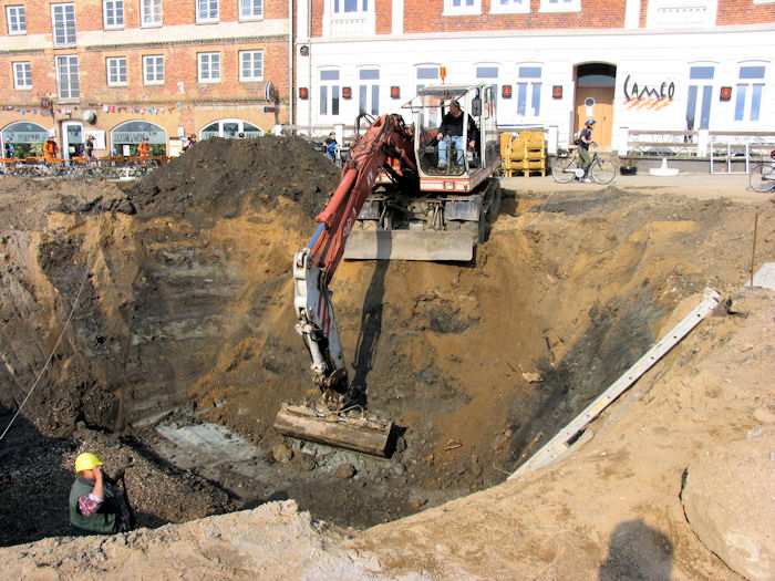 | 10.05.2004 - 13:53 Uhr - Kappeln/Schlei: Nordhafen Umgestaltung des Hafenvorfeldes: Schleibrücke / Hohlweg bis Fährberg Am Hafen Das Loch für das Regenwasserklärbecken ist fertig. Foto: Eckhard Schmidt - Kappeln - (C) 2004 |