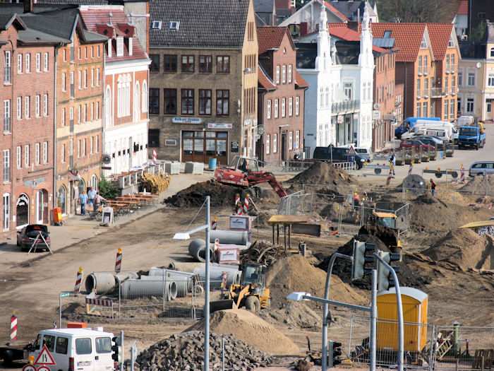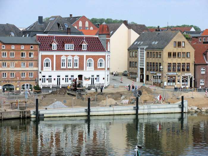 | 10.05.2004 - 10:13 Uhr - Kappeln/Schlei: Nordhafen Umgestaltung des Hafenvorfeldes: Schleibrücke / Hohlweg bis Fährberg Am Hafen Vorarbeiten für den Einbau eines Regenwasserklärbeckens. Ansicht vom Brückenwärterhaus. Foto: Eckhard Schmidt - Kappeln - (C) 2004 |