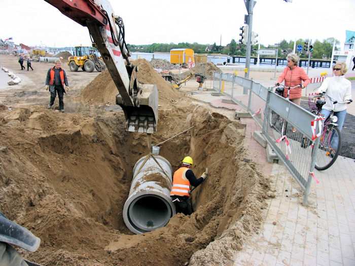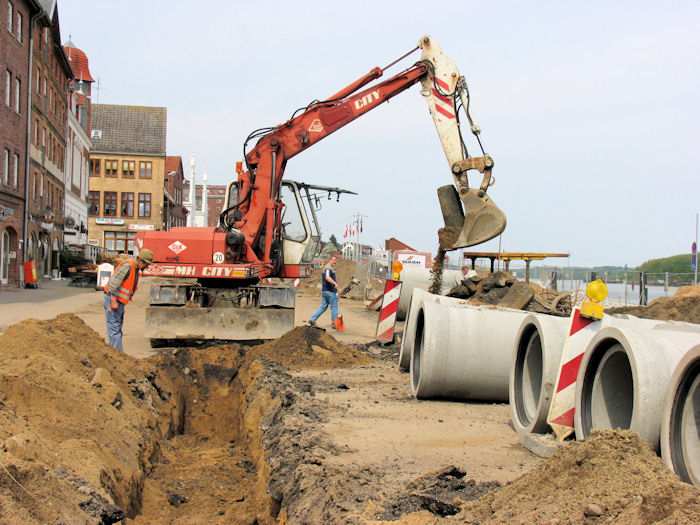 | 10.05.2004 - 14:24 Uhr - Kappeln/Schlei: Nordhafen Umgestaltung des Hafenvorfeldes: Schleibrücke / Hohlweg bis Fährberg Am Hafen Es werden noch alte Regenwasserleitungen ausgebuddelt. Foto: Eckhard Schmidt - Kappeln - (C) 2004 |