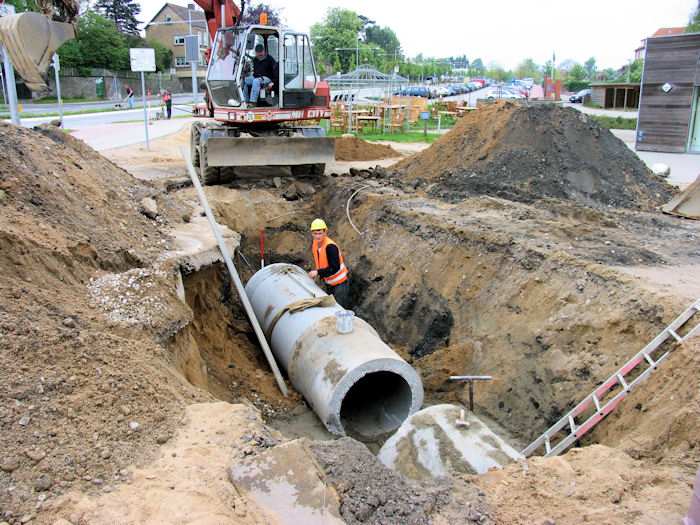 | 14.05.2004 - 13:24 Uhr - Kappeln/Schlei: Nordhafen Umgestaltung des Hafenvorfeldes: Schleibrücke / Hohlweg bis Fährberg Am Hafen Regenwasserklärbecken Es wurde noch ein Stück Ablaufrohr in Richtung kleines Becken verlegt. Über einen Schacht wird das Ablaufrohr dann nächste Woche mit dem kleinen Becken verbunden werden. Foto: Eckhard Schmidt - Kappeln - (C) 2004 |