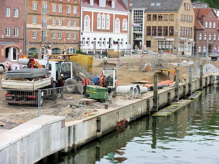 | 12.05.2004 - 14:23 Uhr - Kappeln/Schlei: Nordhafen Umgestaltung des Hafenvorfeldes: Schleibrücke / Hohlweg bis Fährberg Am Hafen Ansicht der Baustelle von der Schleibrücke. Die vier Scheuerpfähle an der Kaimauer sind fertig montiert. Foto: Eckhard Schmidt - Kappeln - (C) 2004 |