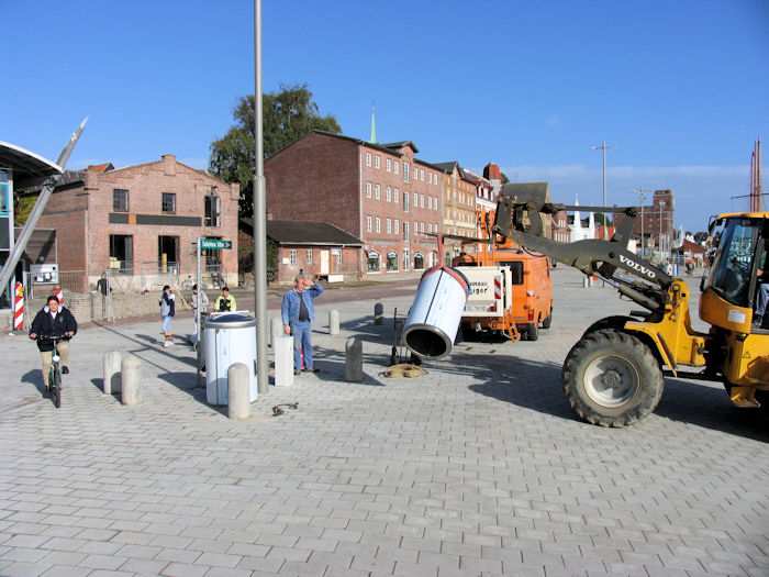| 27.09.2004 - 10:18 Uhr - Kappeln/Schlei: Nordhafen Umgestaltung des Hafenvorfeldes: Schleibrücke / Hohlweg bis Fährberg Am Hafen Bei drei Straßenlampen werden je zwei Stromverteilerkästen gesetzt. Zeichnung des Hafenvorfeldes - Zeichnung der Wassertreppe Foto: Eckhard Schmidt - Kappeln - (C) 2004 |