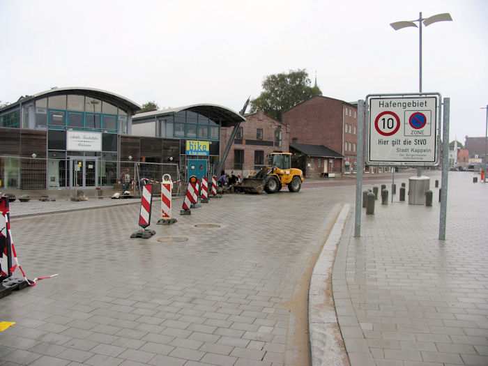 | 27.09.2004 - 10:19 Uhr - Kappeln/Schlei: Nordhafen Umgestaltung des Hafenvorfeldes: Schleibrücke / Hohlweg bis Fährberg Am Hafen Vor den Tonnendachhäusern muss das private Betonpflaster teilweise neu verlegt werden. Foto: Eckhard Schmidt - Kappeln - (C) 2004 |