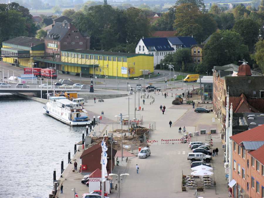 | 01.10.2004 - 9:41 Uhr - Kappeln/Schlei: Nordhafen Umgestaltung des Hafenvorfeldes: Schleibrücke / Hohlweg bis Fährberg Am Hafen Ansicht von der Wohnung Saxer Foto: Eckhard Schmidt - Kappeln - (C) 2004 |