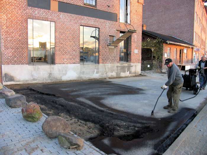 | 01.10.2004 - 7:49 Uhr - Kappeln/Schlei: Nordhafen Umgestaltung des Hafenvorfeldes: Schleibrücke / Hohlweg bis Fährberg Am Hafen Heute soll die Fläche vor dem Architekturbüro asphaltiert werden. Es wird gerade die gesamte Fläche mit einem Haftkleber eingesprüht. Foto: Eckhard Schmidt - Kappeln - (C) 2004 |