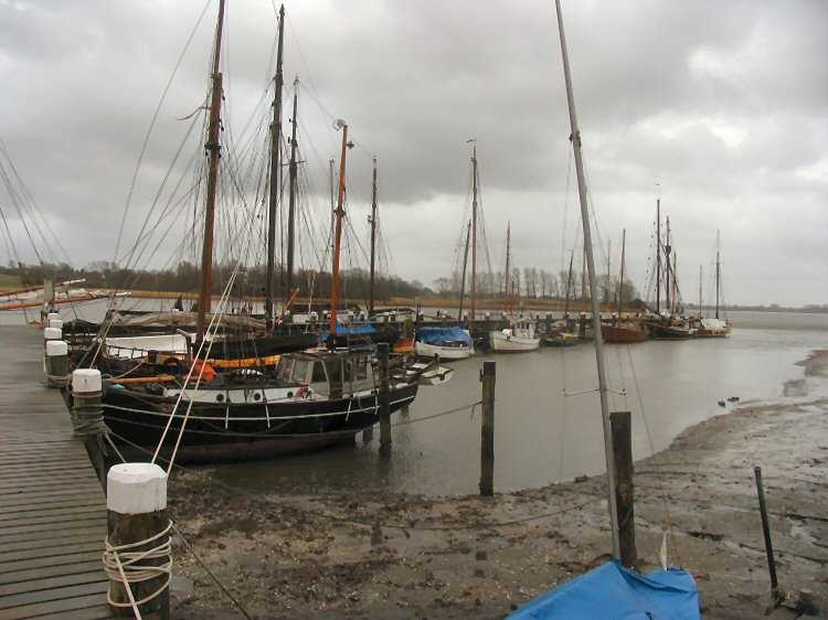 | 09.01.2004 - Kappeln/Schlei: Orkantief -> Niedrigwasser in der Schlei Auch im Museumshafen liegen einige Boote auf Schiet. |