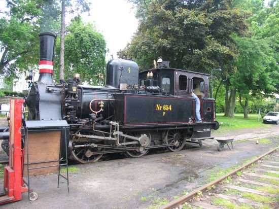 | 17.06.2005 - Kappeln/Schlei: Museumsbahnhof - Kleine Dampflok unter Dampf Die kleine dänische Dampflok. Früher wurde sie für Rangierarbeiten genutzt. |