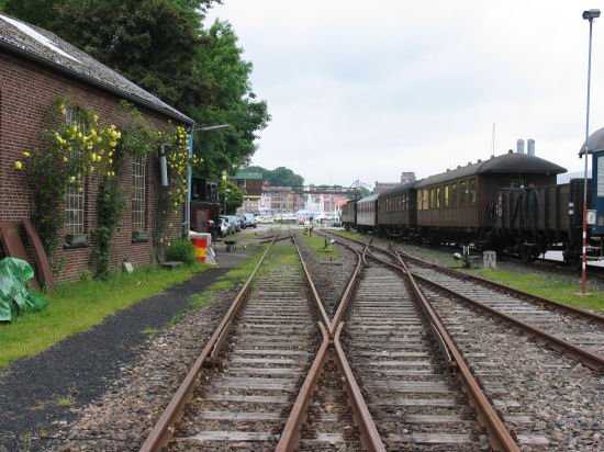 | 17.06.2005 - Kappeln/Schlei: Museumsbahnhof - Kleine Dampflok unter Dampf Museumsbahnhof. Blick in Richtung Süden. Hier geht es nach Süderbrarup. |