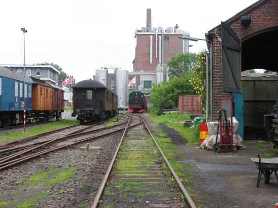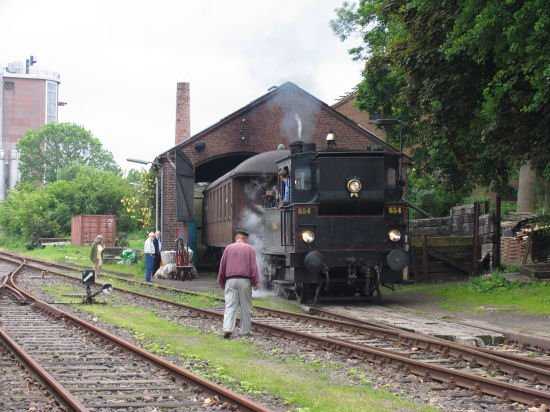 | 17.06.2005 - Kappeln/Schlei: Museumsbahnhof - Kleine Dampflok unter Dampf Die beiden Dampfloks verschwinden im Schuppen. |