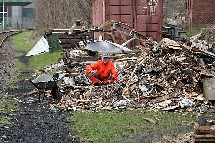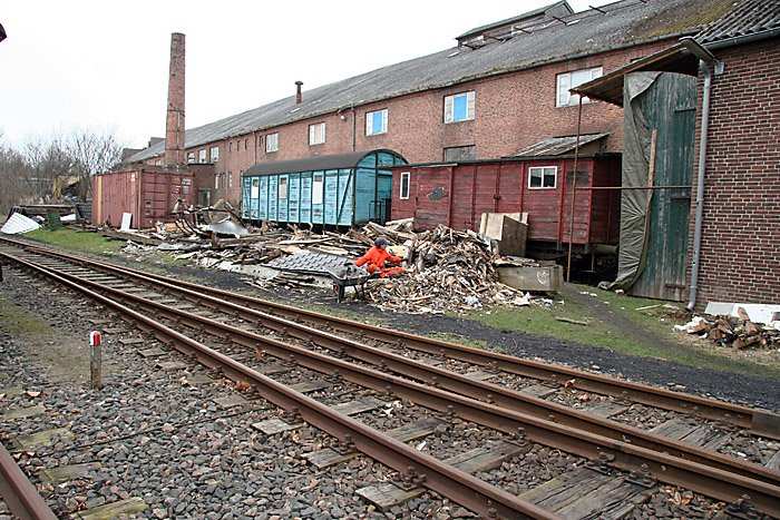 | 08.04.2006 - 10:05 Uhr - Kappeln/Schlei: Angelner-Dampfeisenbahn Für den Metallschrott steht ein weißer Container (Hintergrund) bereit. Foto: Eckhard Schmidt - Kappeln - (C) 2006 |