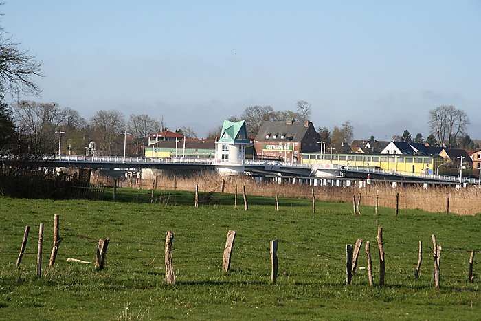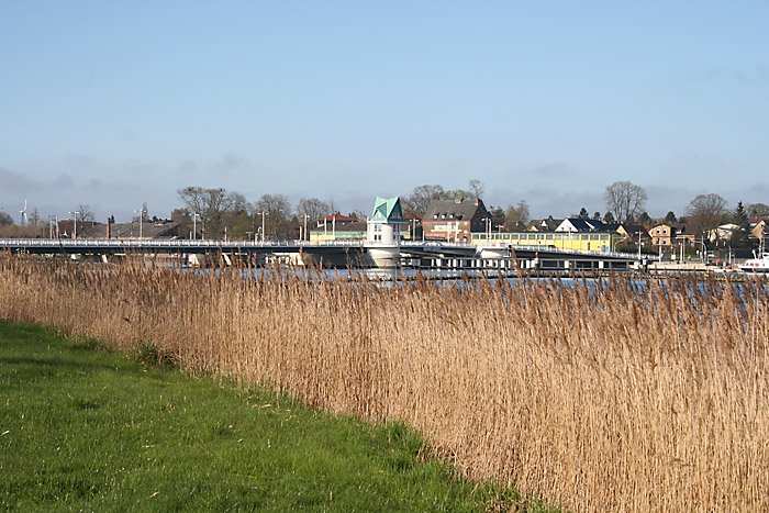 | 28.04.2006 - 8:40 Uhr - Kappeln/Schlei: Schleibrücke, Nikolai-Kirche und GAG-Silo Blick von Ellenberg in Richtung der Schleibrücke (Nordseite). Foto: Eckhard Schmidt - Kappeln - (C) 2006 |