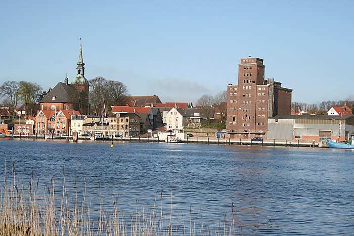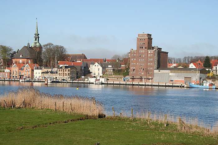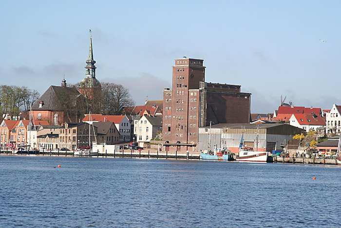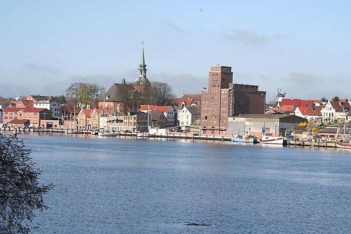 | 28.04.2006 - 8:56 Uhr - Kappeln/Schlei: Schleibrücke, Nikolai-Kirche und GAG-Silo Blick von Ellenberg in Richtung der Nikolai-Kirche und dem GAG-Silo im Nordhafen. Foto: Eckhard Schmidt - Kappeln - (C) 2006 |