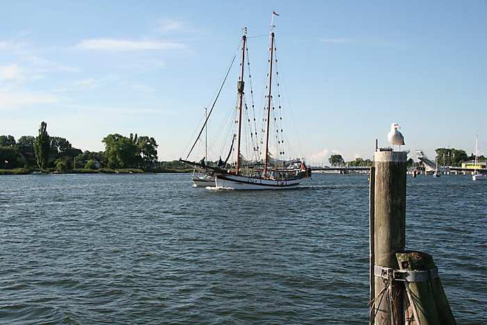 | 05.08.2006 - 18:55 Uhr - Kappeln/Schlei: Einlaufen der MAGDA D Die MAGDA D dreht jetzt bei, um mit den Bug in Richtung Norden anzulegen. Foto: Eckhard Schmidt - Kappeln - (C) 2006 |