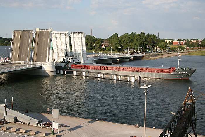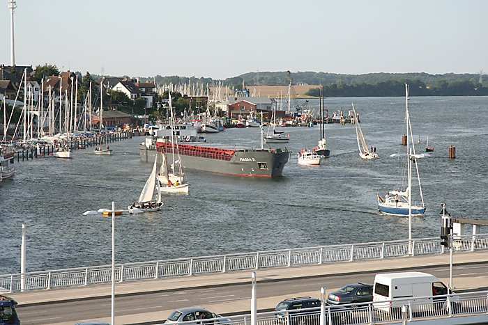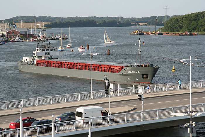| 05.08.2006 - 18:53 Uhr - Kappeln/Schlei: Einlaufen der MAGDA D Die MAGDA D hat die Schleibrücke passiert und läuft jetzt in den Südhafen ein. Foto: Eckhard Schmidt - Kappeln - (C) 2006 |
