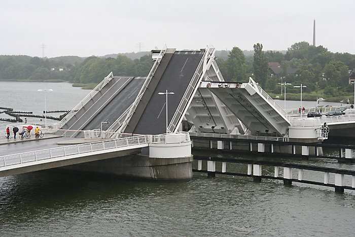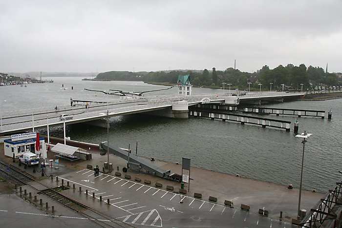 | 14.08.2006 - 14:47 Uhr - Kappeln/Schlei: Schleibrücke Brückenöffnung: 14:45 Uhr. Es werden gerade die Klappen der Brücke geöffnet. Foto: Eckhard Schmidt - Kappeln - (C) 2006 |