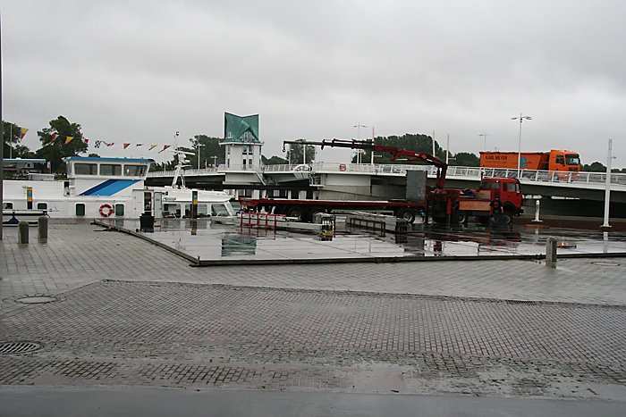 | 14.08.2006 - 14:59 Uhr - Kappeln/Schlei: Nordhafen Blick in Richtung Brückenwärterhaus. Das Festzelt vom Hafenfest 2006 wird gerade abgebaut. Foto: Eckhard Schmidt - Kappeln - (C) 2006 |
