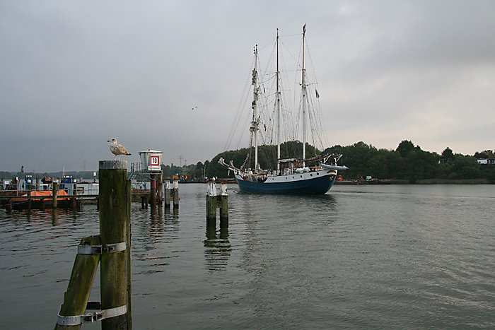 | 27.09.2006 - 8:55 Uhr - Kappeln/Schlei: Nordhafen Der holländische Traditionssegler ANTIGUA passiert gerade den Tonnenhof in Richtung Ostsee. Foto: Eckhard Schmidt - Kappeln - (C) 2006 |