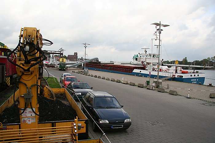 | 23.10.2006 - 14:44 Uhr - Kappeln/Schlei: Südhafen - Auslaufen der KARINA W Die KARINA W aus Stade wird noch mit Raps beladen. Es befinden sich im Augenblick 820 Tonnen Raps im Laderaum. Es sind noch ca. 200 Tonnen zu laden. Die KARINA W wird also 16:45 Uhr Kappeln wieder verlassen. Zielhafen ist Aarhus in Dänemark. Foto: Eckhard Schmidt - Kappeln - (C) 2006 |
