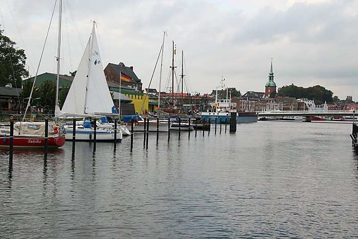 | 23.10.2006 - 16:34 Uhr - Kappeln/Schlei: Südhafen - Auslaufen der KARINA W Blick vom ASC-Yachthafen in Richtung Südhafen. Die KARINA W ist bereit zum Auslaufen. An der Innenbrücke des ASC-Yachthafens werden bei einem Segelboot noch die Segel getrocknet bevor es in das Winterlager geht. Foto: Eckhard Schmidt - Kappeln - (C) 2006 |