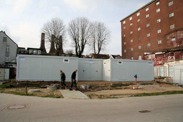 | 15.03.2007 - 14:31 Uhr - Kappeln/Schlei: Gastliegerhafen An der Ecke zum Dehnhof wurden heute drei Sanitärcontainer aufgestellt. Der Bau der Sanitäreinrichtungen im Keller des ehemaligen Silos verzögert sich. Siehe auch Artikel im Schlei-Boten vom 23. Februar 2007. Foto: Eckhard Schmidt - Kappeln - (C) 2007 |