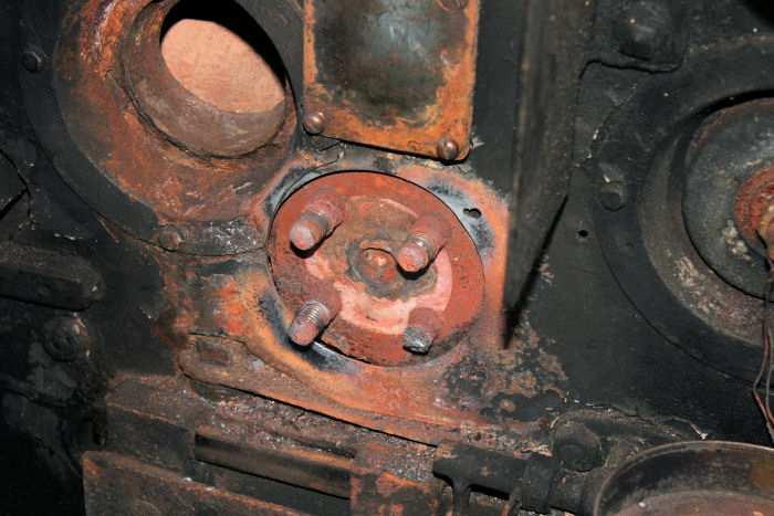 | 05.05.2007 - 14:37 Uhr - Kappeln/Schlei: Angelner Dampfeisenbahn Führerstand der kleinen Dampflok Julchen". Diese Lok ist zur Zeit nicht betriebsbereit. Unterer Rohranschluss für die Wasserstandsanzeige: verstopft. Foto: Eckhard Schmidt - Kappeln - (C) 2007 |
