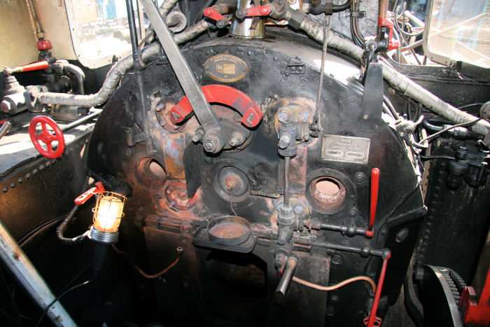 | 05.05.2007 - 14:37 Uhr - Kappeln/Schlei: Angelner Dampfeisenbahn Führerstand der kleinen Dampflok Julchen". Diese Lok ist zur Zeit nicht betriebsbereit. Es finden gerade Wartungsarbeiten statt. Foto: Eckhard Schmidt - Kappeln - (C) 2007 |