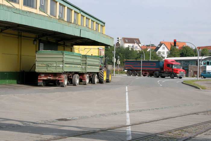 | 02.07.2007 - 9:29 Uhr - Kappeln/Schlei: Südhafen Die BARENTSZZEE hat mit einer Ladung Kalk im Südhafen festgemacht Wenn die Anhänger der Landwirte voll beladen sind, werden diese wieder bei der Getreide AG gewogen. Ein Landwirt ist gerade mit seinen voll beladenen Anhängern auf die Waage gefahren. Foto: Eckhard Schmidt - Kappeln - (C) 2007 |