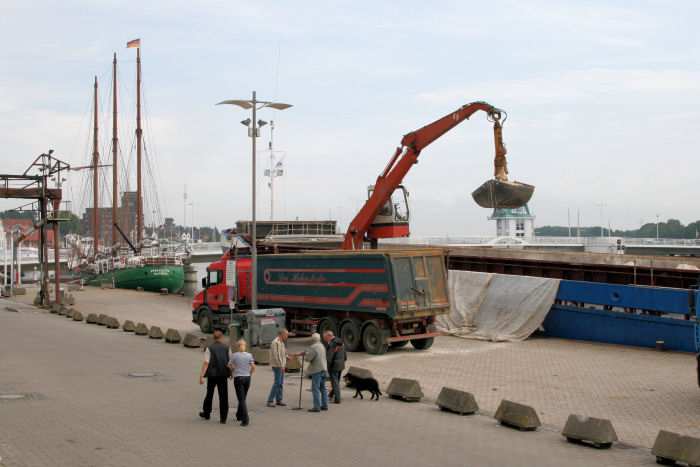 | 02.07.2007 - 9:24 Uhr - Kappeln/Schlei: Südhafen Die BARENTSZZEE hat mit einer Ladung Kalk im Südhafen festgemacht Einige Landwirte holen den Kalk direkt mit ihren Fahrzeugen direkt beim Schiff ab. Bevor die leeren Anhänger beladen werden, werden diese bei der Getreide AG am Südhafen gewogen. Foto: Eckhard Schmidt - Kappeln - (C) 2007 |