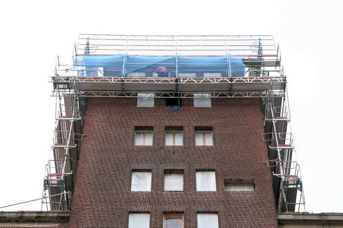 | 02.08.2007 - 8:36 Uhr - Kappeln/Schlei: PK-Speicher im Nordhafen Ost- und Nordseite des PK-Speichers Blick von Ellenberg hinüber zum PK-Speicher. Der Turm in der Mitte des Speichers wurde gestern fertig eingerüstet, damit das Dach des Turmes ebenfalls saniert werden kann. PK = Peter Kruse PK-Speicher = ehemaliger GAG-Silo im Nordhafen (GAG = Getreide AG) Siehe auch weitere Infos zum PK-Speicher (interne Links): Peter Kruse und Getreide AG --- PK-Speicher: Stockwerke und Grundrisse Foto: Eckhard Schmidt - Kappeln - (C) 2007 |