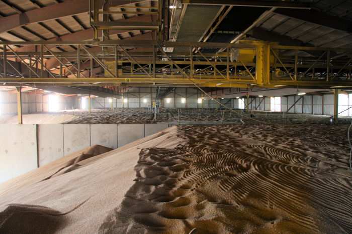 | 17.08.2007 - 9:18 Uhr - Kappeln/Schlei: Getreide AG in Loitmark Lagerhalle der Getreide AG in Loitmark Blick von Norden in eine der beiden Lagerhallen in Loitmark. Die großen Boxen sind mit Weizen und Gerste der Ernte 2007 gefüllt. Foto: Eckhard Schmidt - Kappeln - (C) 2007 |