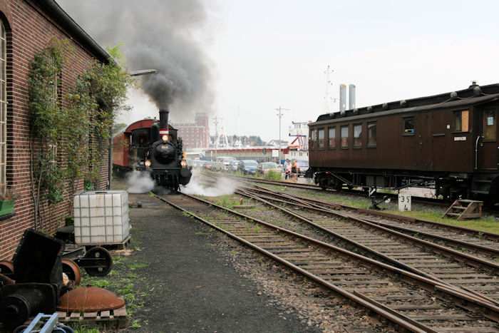 | 06.07.2008 - 14:02:00 Uhr - Kappeln/Schlei: Angelner Dampfeisenbahn 14:00 Uhr - 2. Tagesfahrt nach Süderbrarup und zurück Der Zug mit der Dampflok F 654 Julchen" an der Spitze hat sich Richtung Süderbrarup in Bewegung gesetzt. Foto: Eckhard Schmidt - Kappeln - (C) 2008 |