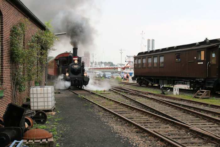 | 06.07.2008 - 14:01:53 Uhr - Kappeln/Schlei: Angelner Dampfeisenbahn 14:00 Uhr - 2. Tagesfahrt nach Süderbrarup und zurück Der Zug mit der Dampflok F 654 Julchen" an der Spitze hat sich Richtung Süderbrarup in Bewegung gesetzt. Dampflok - 3 Personenwagen und 1 offener Güterwagen Lokführer: Dieter Jordt Heizer: Bruno Seidensticker Foto: Eckhard Schmidt - Kappeln - (C) 2008 |