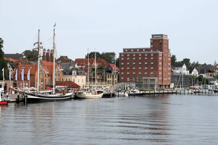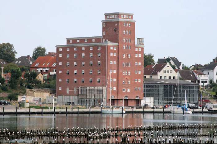 | 11.09.2008 - 9:21 Uhr - Kappeln/Schlei: PK-Speicher im Nordhafen Süd- und Ostseite des Speichers Ansicht von der Schleibrücke (Brückenklappen) Im Bereich des ehemaligen Anbaus (Südseite) wurden MULTIPOR-Platten vor die Außenwand geklebt und bereits die Oberfläche dünn verputzt. Foto: Eckhard Schmidt - Kappeln - (C) 2008 |