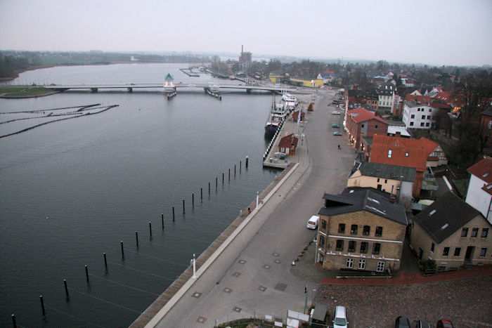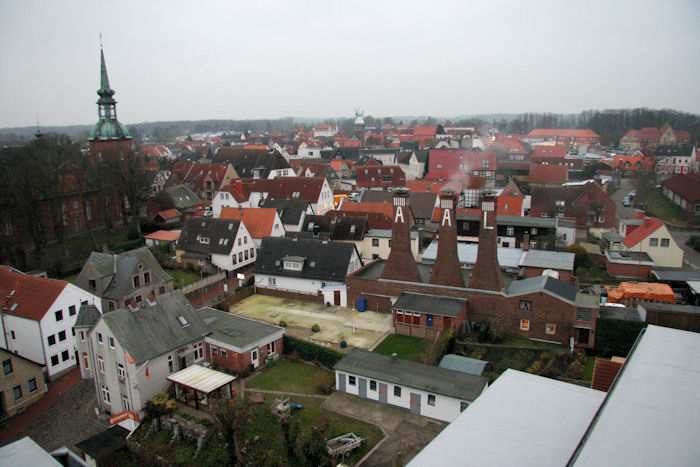 | 17.12.2008 - 8:48 Uhr - Kappeln/Schlei: PK-Speicher im Nordhafen 10. Obergeschoss - Westseite Blick in Richtung Innenstadt. Bei der Fischräucherei Föh wird gerade geräuchert. Foto: Eckhard Schmidt - Kappeln - (C) 2008 |