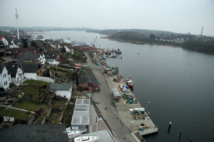 | 17.12.2008 - 8:49 Uhr - Kappeln/Schlei: PK-Speicher im Nordhafen 10. Obergeschoss - Nordseite Blick in Richtung Fischereihafen. Es ist heute dunkel, trübe und trocken in Kappeln. Foto: Eckhard Schmidt - Kappeln - (C) 2008 |