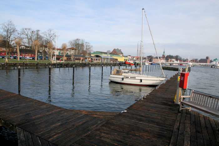 | 02.04.2010 - 9:09 Uhr - Kappeln/Schlei: ASC-Yachthafen Ansichten von der Außenbrücke Blick vom südlichen Ende der Außenbrücke hinüber zum Museumshafen. Die Sonnen scheint, aber es ist heute noch ziemlich kalt. Foto: Eckhard Schmidt - Kappeln - (C) 2010 |