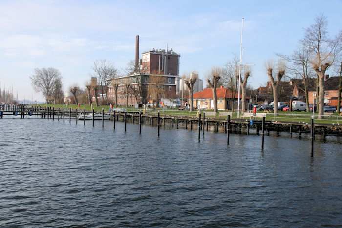 | 02.04.2010 - 9:09 Uhr - Kappeln/Schlei: ASC-Yachthafen Ansichten von der Außenbrücke Cremilk-Werk Südliche Einfahrt zum Yachthafen Foto: Eckhard Schmidt - Kappeln - (C) 2010 |