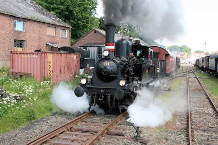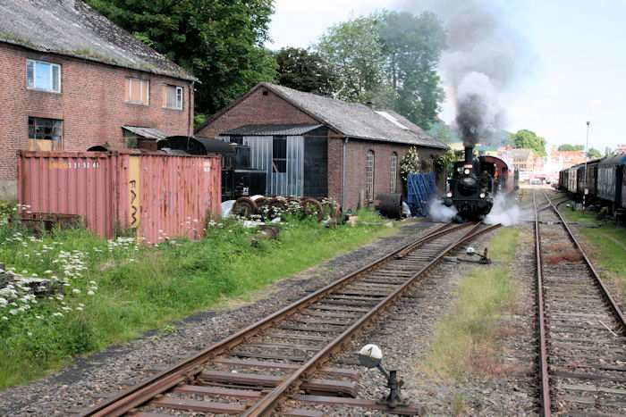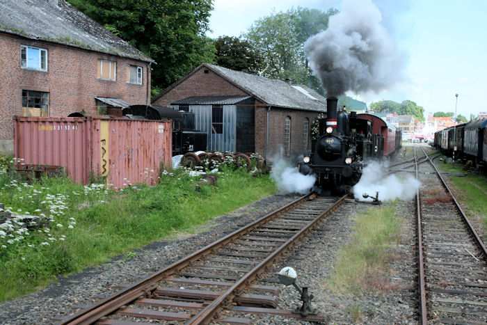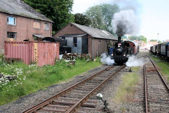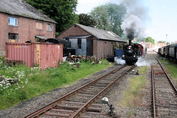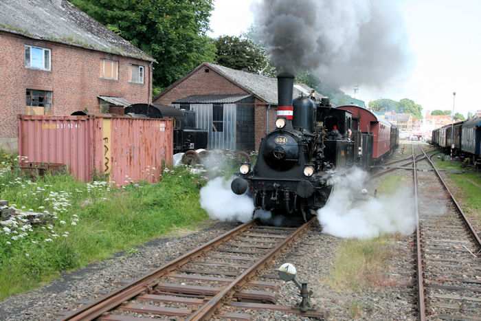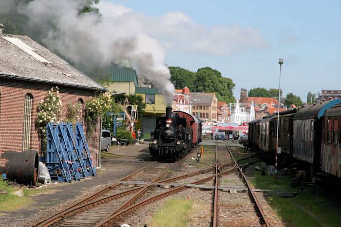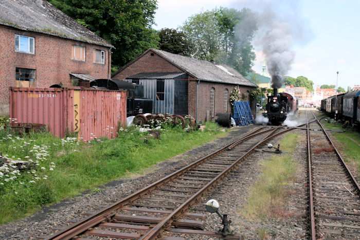 | 27.06.2010 - 11:00:02 Uhr - Kappeln/Schlei: Angelner Dampfeisenbahn Erste Tagesfahrt: Kappeln - Süderbrarup und zurück Parallel zur Abfahrt des Zuges hat sich wieder einmal eine Wolke vor die Sonne geschoben. Foto: Eckhard Schmidt - Kappeln - (C) 2010 |