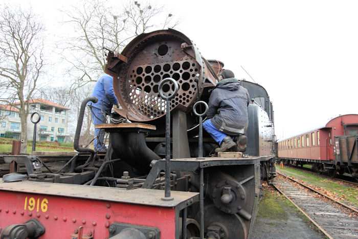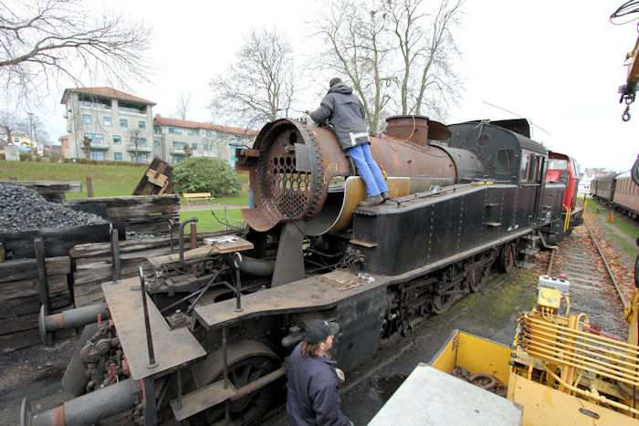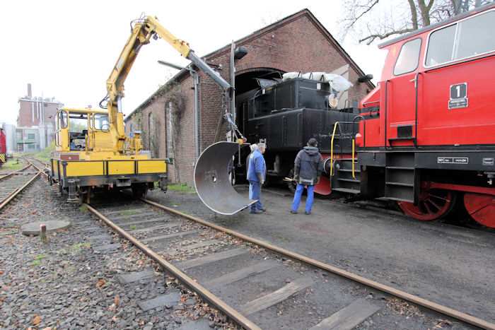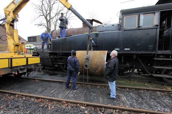 | 22.11.2010 - 10:20 Uhr - Kappeln/Schlei: Angelner Dampfeisenbahn Dampflok S1916 - Kesselreparatur Der SKL steht jetzt auch in der richtigen Position. Foto: Eckhard Schmidt - Kappeln - (C) 2010 |