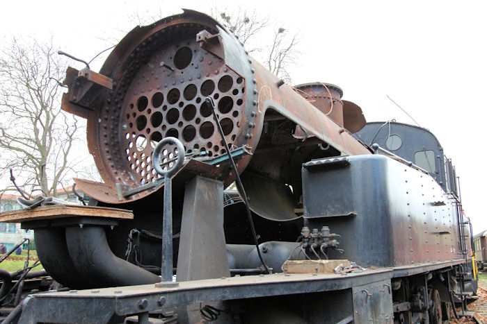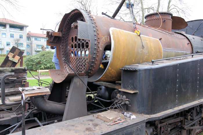 | 22.11.2010 - 10:35 Uhr - Kappeln/Schlei: Angelner Dampfeisenbahn Dampflok S1916 - Kesselreparatur Das vordere Kesselblech liegt jetzt unter dem Oberteil des Kessels. Foto: Eckhard Schmidt - Kappeln - (C) 2010 |