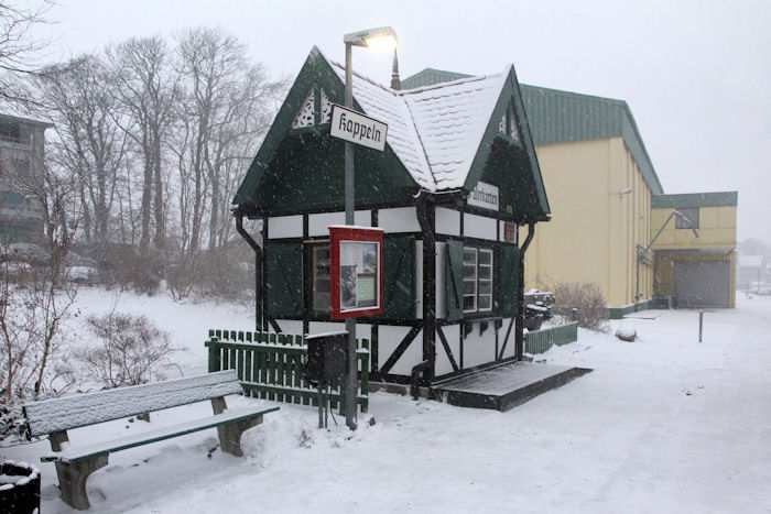| 05.12.2010 - 9:08 Uhr - Kappeln/Schlei: Angelner Dampfeisenbahn Nikolausfahrt mit Schnee Der neue Fahrkartenschalter. Foto: Eckhard Schmidt - Kappeln - (C) 2010 |