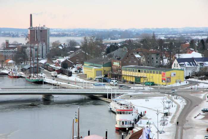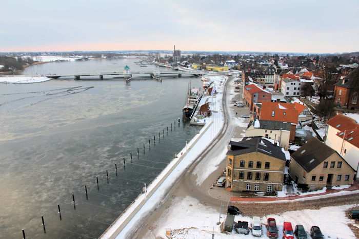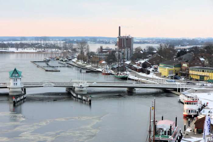 | 22.02.2011 - 8:32 Uhr - Kappeln/Schlei: PK-Speicher im Nordhafen 10. Obergeschoss - Südseite - Aussicht ASC-Yachthafen - Cremilk-Werk Südhafen Schleibrücke Foto: Eckhard Schmidt - Kappeln - (C) 2011 |