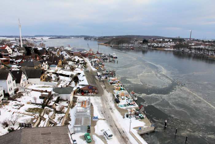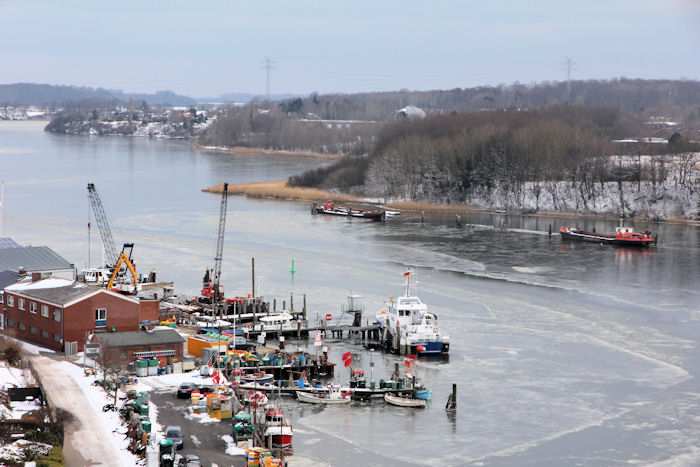 | 22.02.2011 - 8:34 Uhr - Kappeln/Schlei: PK-Speicher im Nordhafen 10. Obergeschoss - Nordseite - Aussicht Fischereihafen Foto: Eckhard Schmidt - Kappeln - (C) 2011 |