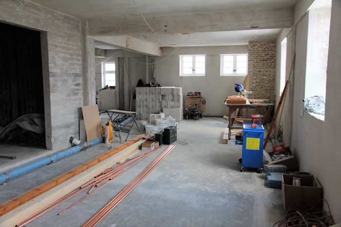 | 22.02.2011 - 8:41 Uhr - Kappeln/Schlei: PK-Speicher im Nordhafen 4. Obergeschoss - Ostseite Hier im 4. OG werden gerade Rohrleitungen für Heizung, Wasser und Abwasser verlegt und es wird der Fußboden angehoben. Norden Westen <---+---> Osten Foto: Eckhard Schmidt - Kappeln - (C) 2011 |