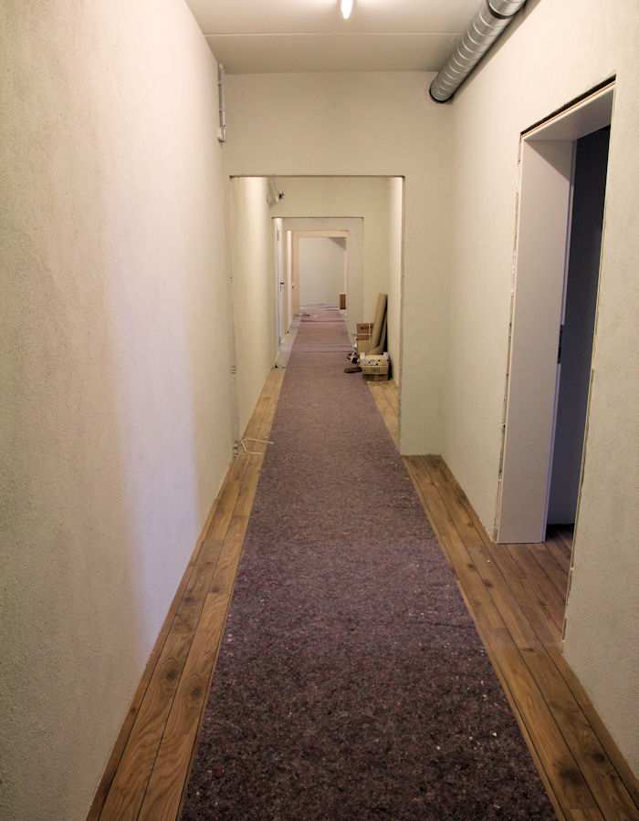 | 22.02.2011 - 8:49 Uhr - Kappeln/Schlei: PK-Speicher im Nordhafen 2. Obergeschoss - Südseite - Zelle 5 bis 2 - Flur Hier im 2. OG wurde in allen Fluren und Zimmern der Fußbodenbelag komplett verlegt. Osten Norden <---+---> Süden Foto: Eckhard Schmidt - Kappeln - (C) 2011 |