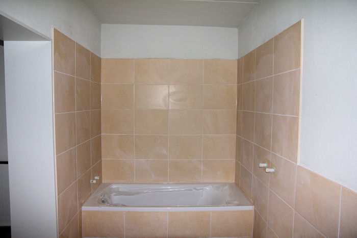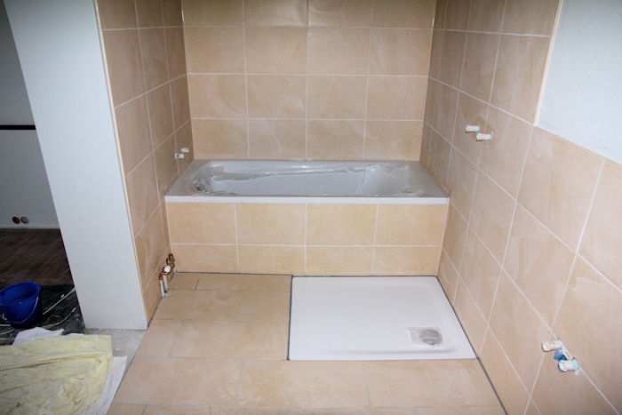 | 22.02.2011 - 8:51 Uhr - Kappeln/Schlei: PK-Speicher im Nordhafen 2. Obergeschoss - Südseite - Zimmer Mitte - Zelle 3 Westseite der südlichen Hälfte der Zelle 3 Badewanne und Duschecke (vor der Wanne) (Unterer Teil) Foto: Eckhard Schmidt - Kappeln - (C) 2011 |