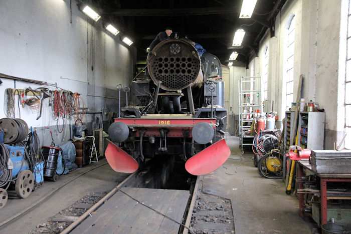 | 25.03.2011 - 9:18 Uhr - Kappeln/Schlei: Angelner Dampfeisenbahn Dampflok S1916 - Kessel - TÜV - Wasserdruckprobe Die Dampflok S1916 steht alleine im Lokschuppen über der Grube. Heute soll bei der Lok die Wasserdruckprobe im Beisein des TÜV NORD durchgeführt werden. Der Kessel ist bereits mit Wasser gefüllt, welches gestern mit Hilfe der Dampflok Julchen" angewärmt wurde. Foto: Eckhard Schmidt - Kappeln - (C) 2011 |