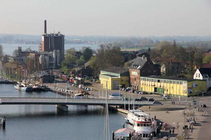 | 22.04.2011 - 9:10 Uhr - Kappeln/Schlei: Hafen und Stadt Ansichten von oben - aus dem Pierspeicher Südseite Südhafen Schleibrücke Nordhafen Foto: Eckhard Schmidt - Kappeln - (C) 2011 |