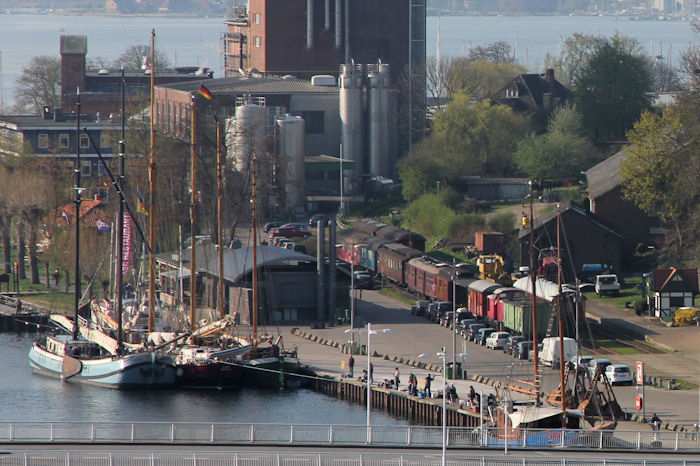 | 22.04.2011 - 9:14 Uhr - Kappeln/Schlei: Hafen und Stadt Ansichten von oben - aus dem Pierspeicher Nordseite Lusthof Foto: Eckhard Schmidt - Kappeln - (C) 2011 |